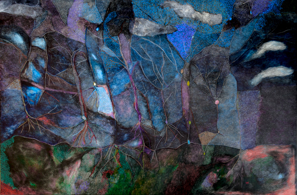Darkness Within, scratchboard, oil paint pen, and ink, 24 x 36 in., 2016